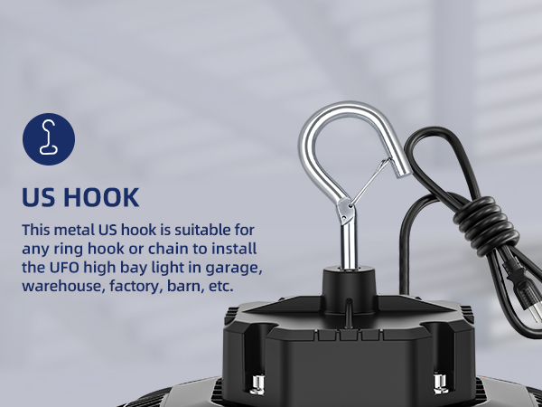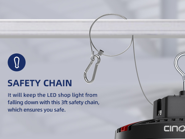 Certified Quality and Safe Installation: Backed by ETL certification, this heavy-duty LED light ensures superior quality, safety, and reliability for your lighting needs. Additionally, this LED high-bay light, equipped with a convenient US plug and included safety chain, also ensures simple and secure installation.