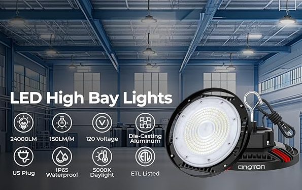 Exceptional Brightness and Energy Efficiency: CINOTON's 160W UFO shop light lets you experience superior brightness, delivering a remarkable 24,000 lumens of 5000K daylight. This efficiency rivals 700W halogen/sodium lamps, instantly reducing your electric bill by up to 85%.